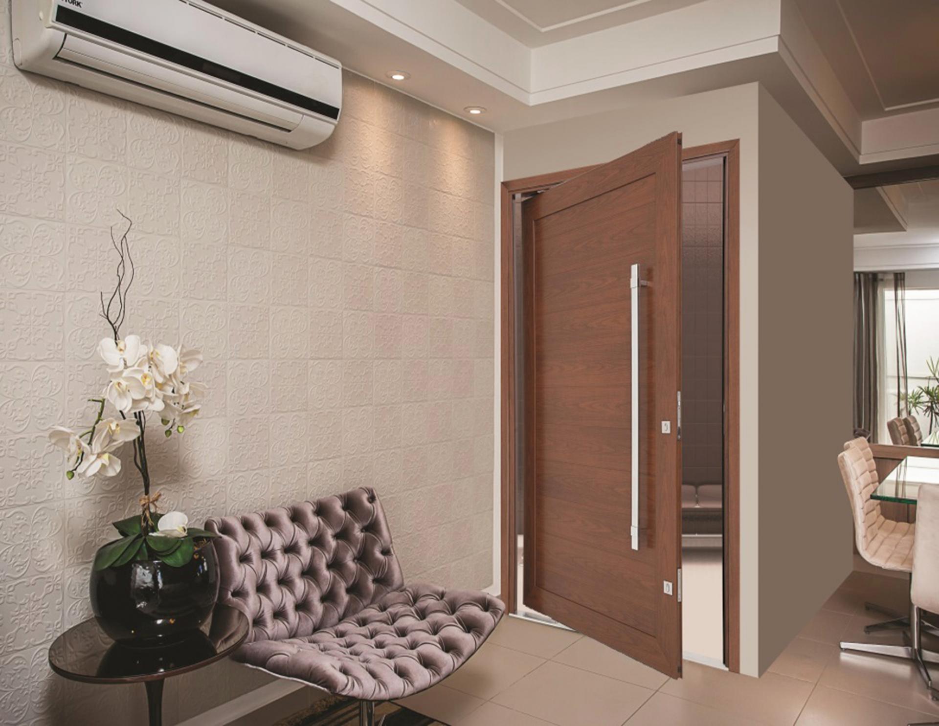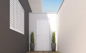 As portas pivotantes de alumínio são normalmente maiores e mais pesadas que as portas articuladas comuns. Fabricada em alumínio e revestida com pintura eletrostática branca, a porta de Alumínio Pivotante com Puxador e Friso, vem sendo muito usada por ser muito resistente e por ter uma vida útil duradoura além de ter uma aparência futurista.