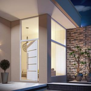 As portas pivotantes de alumínio VITRON são normalmente maiores e mais pesadas que as portas articuladas comuns. Fabricada em alumínio e revestida com pintura eletrostática branca, a porta de Alumínio Pivotante com Puxador e Friso, vem sendo muito usada por ser muito resistente e por ter uma vida útil duradoura além de ter uma aparência futurista.